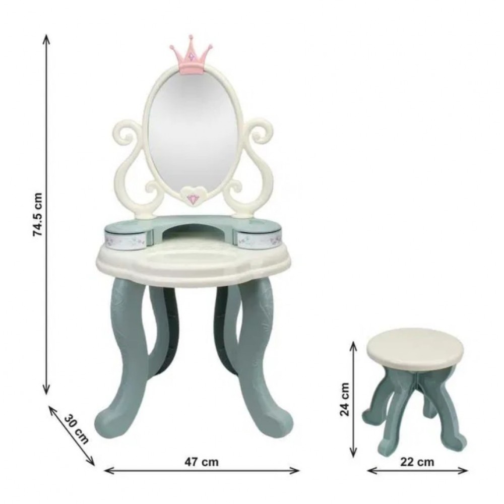 Функциональность и комфорт: Столик оборудован большим зеркалом, которое поможет маленькой моднице следить за своим образом во время игры. Удобные ящики для аксессуаров позволяют держать все под рукой и поддерживать порядок. А прилагаемый стульчик обеспечит комфорт во время долгих игровых сессий.