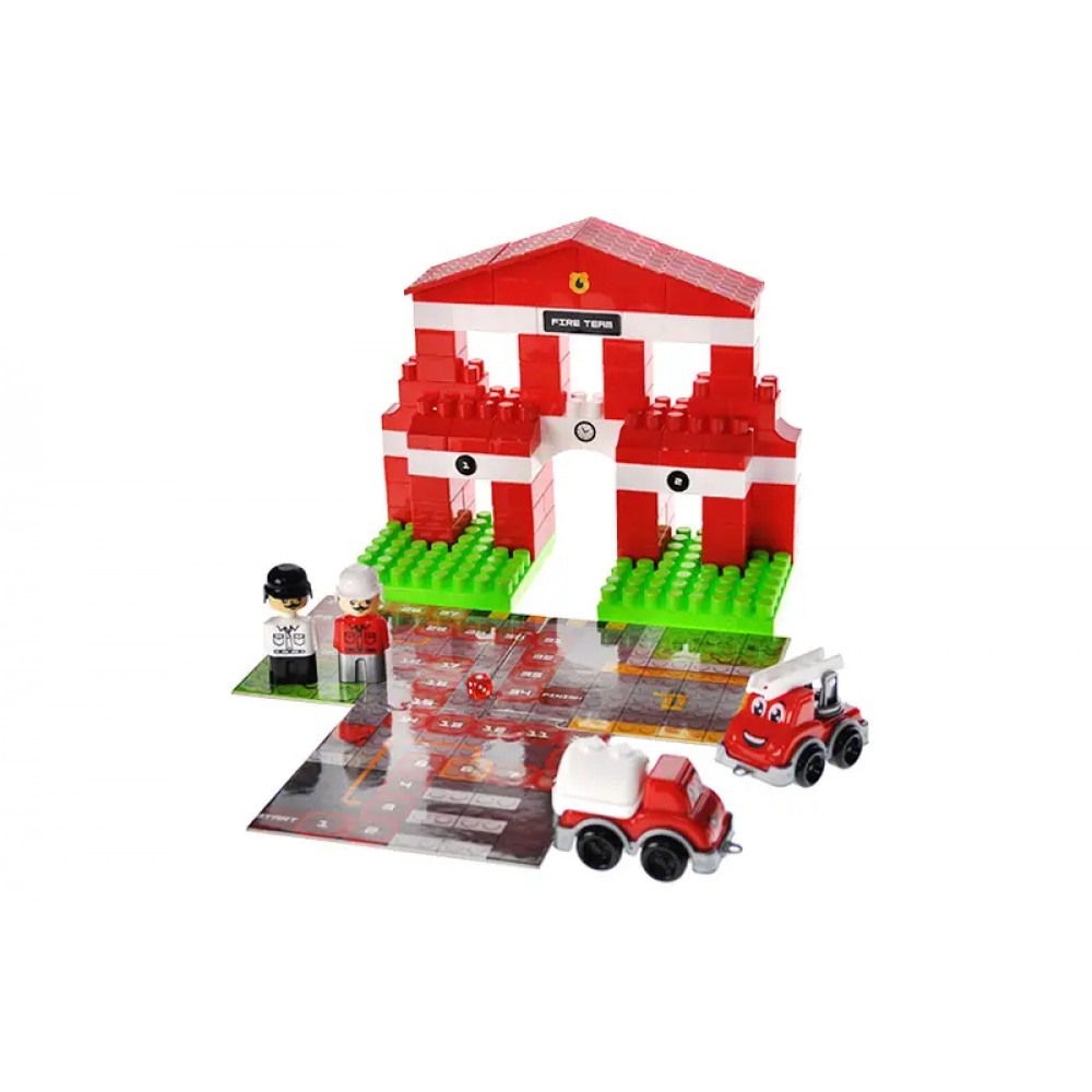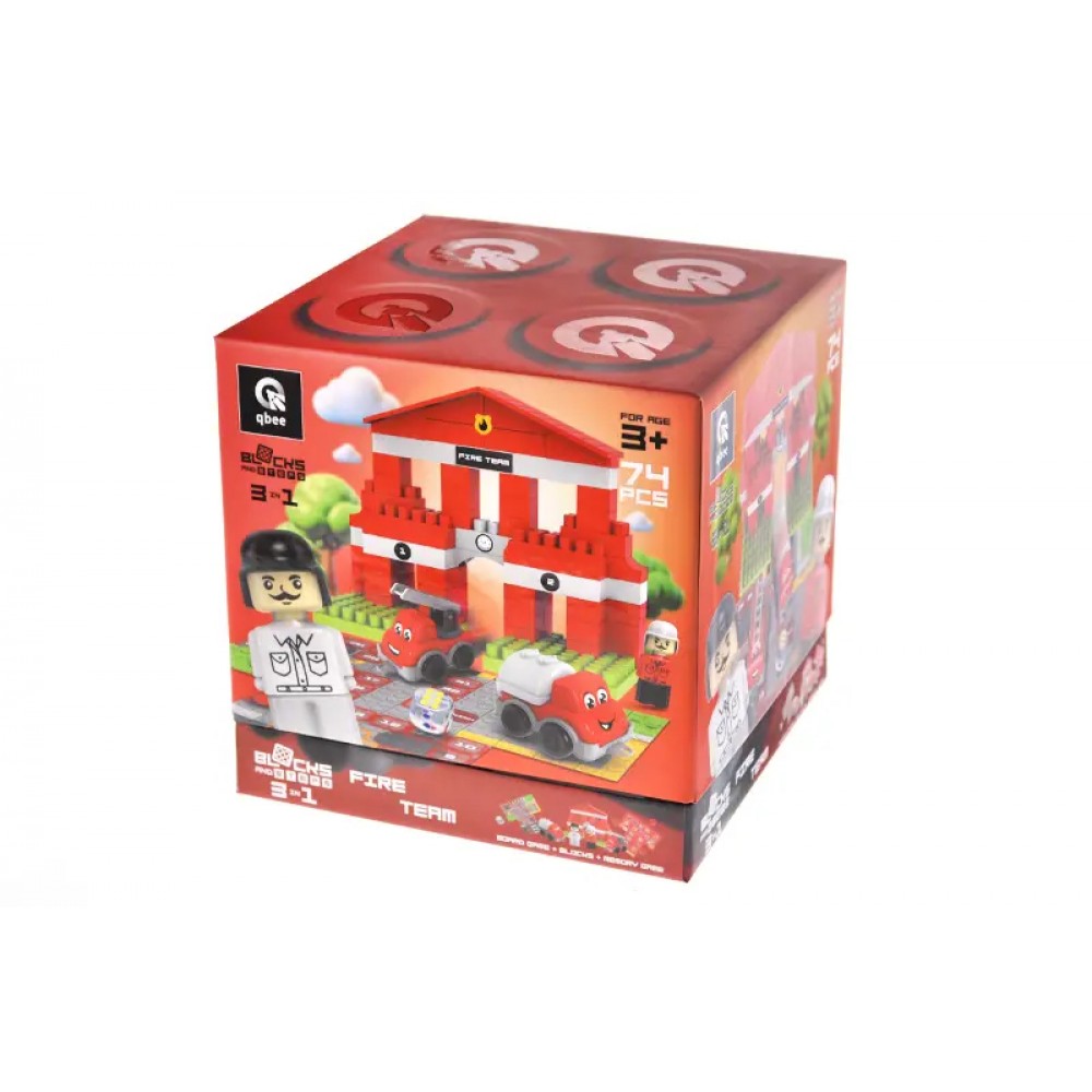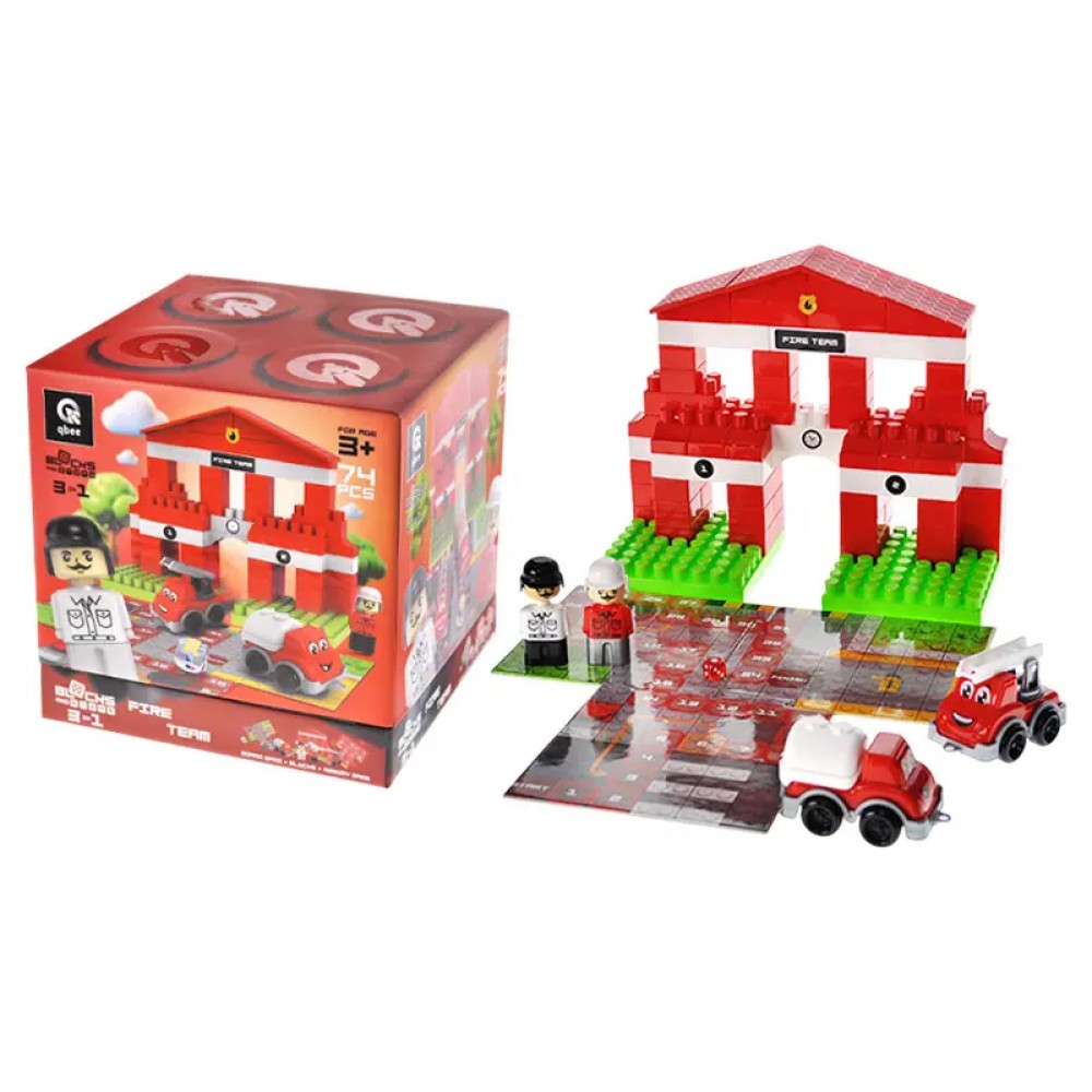 Конструктор "Block&Steps: Пожарная команда" + ходилка и мемори игра 3в1, 74 дет. QB300-001 qbee