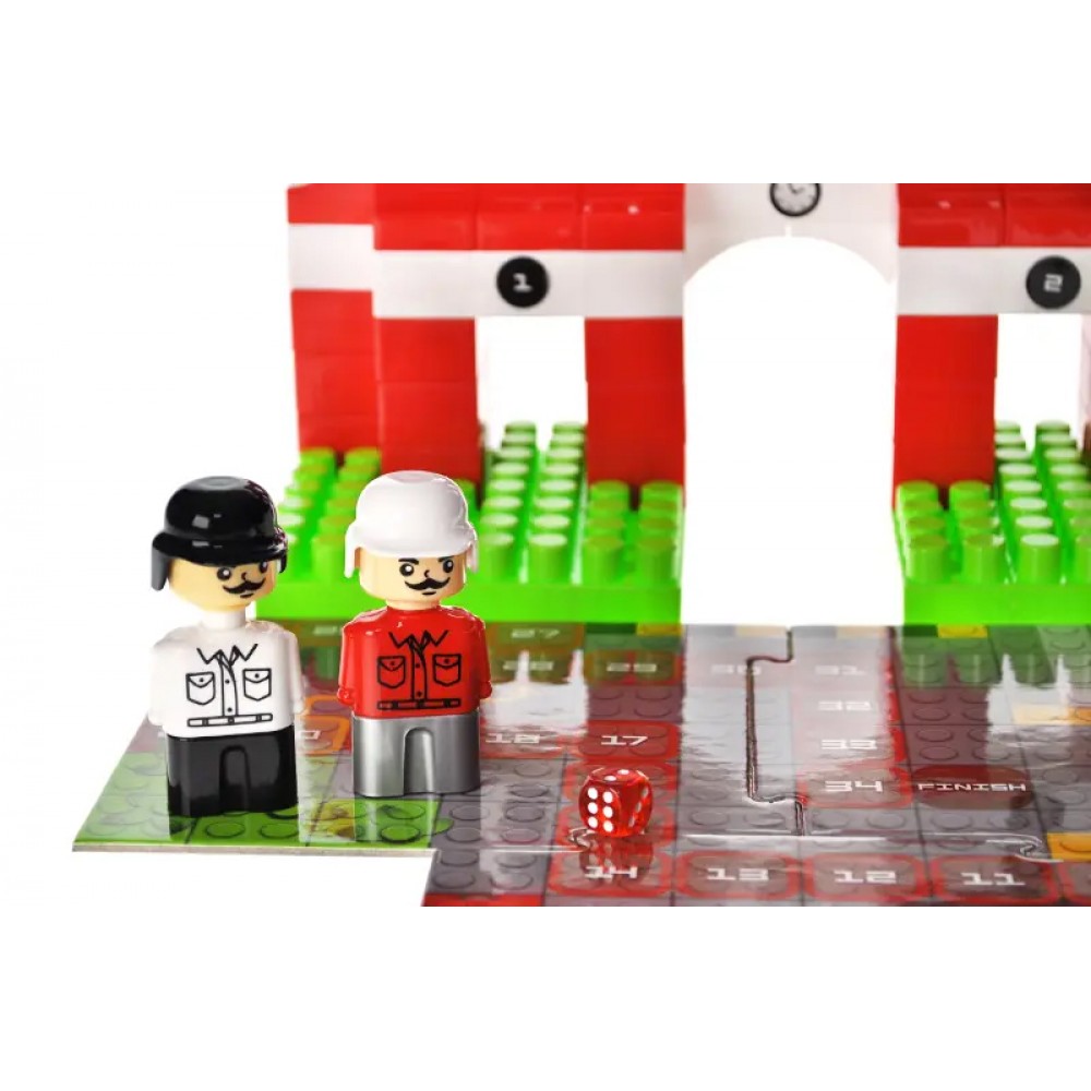После сборки конструктора предложите ребенку разложить игровое поле-пазл и сыграть в увлекательную ходилку с кубиком: перемещаясь по результату броска, малыши «тушат» вымышленные пожары и преодолевают небольшие препятствия. Третья игра — мемори — развивает память и внимательность, ведь нужно найти одинаковые карточки среди всех перевёрнутых.