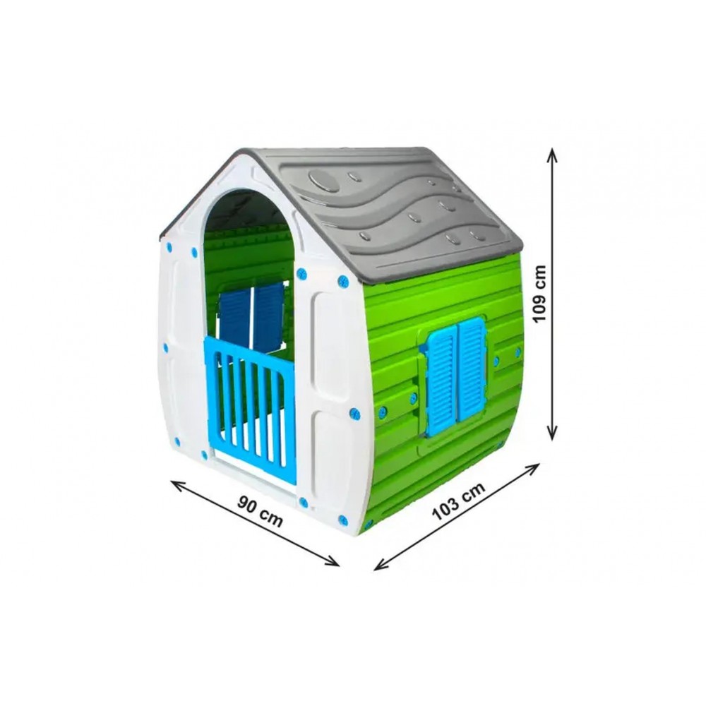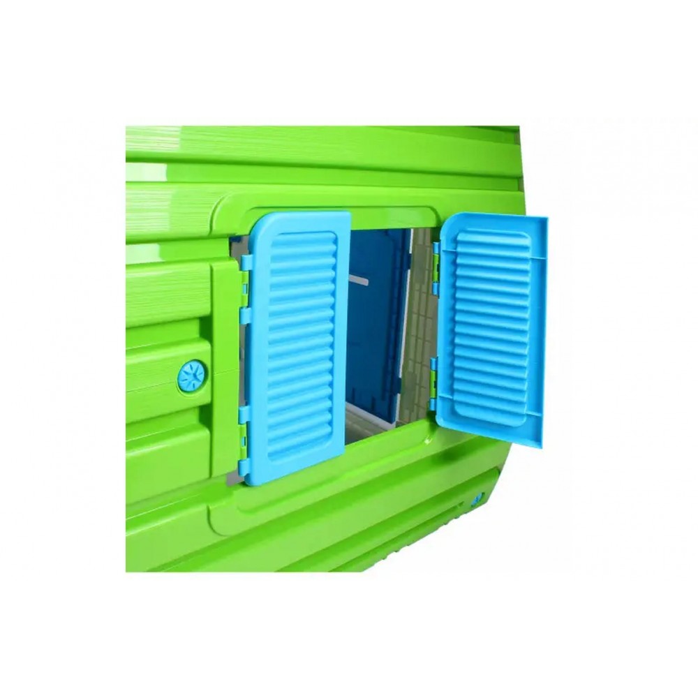 Яркие цвета: сочетание зеленых стен, синих ставен, белых деталей и серой крыши создает привлекательный внешний вид, стимулирующий воображение ребенка.