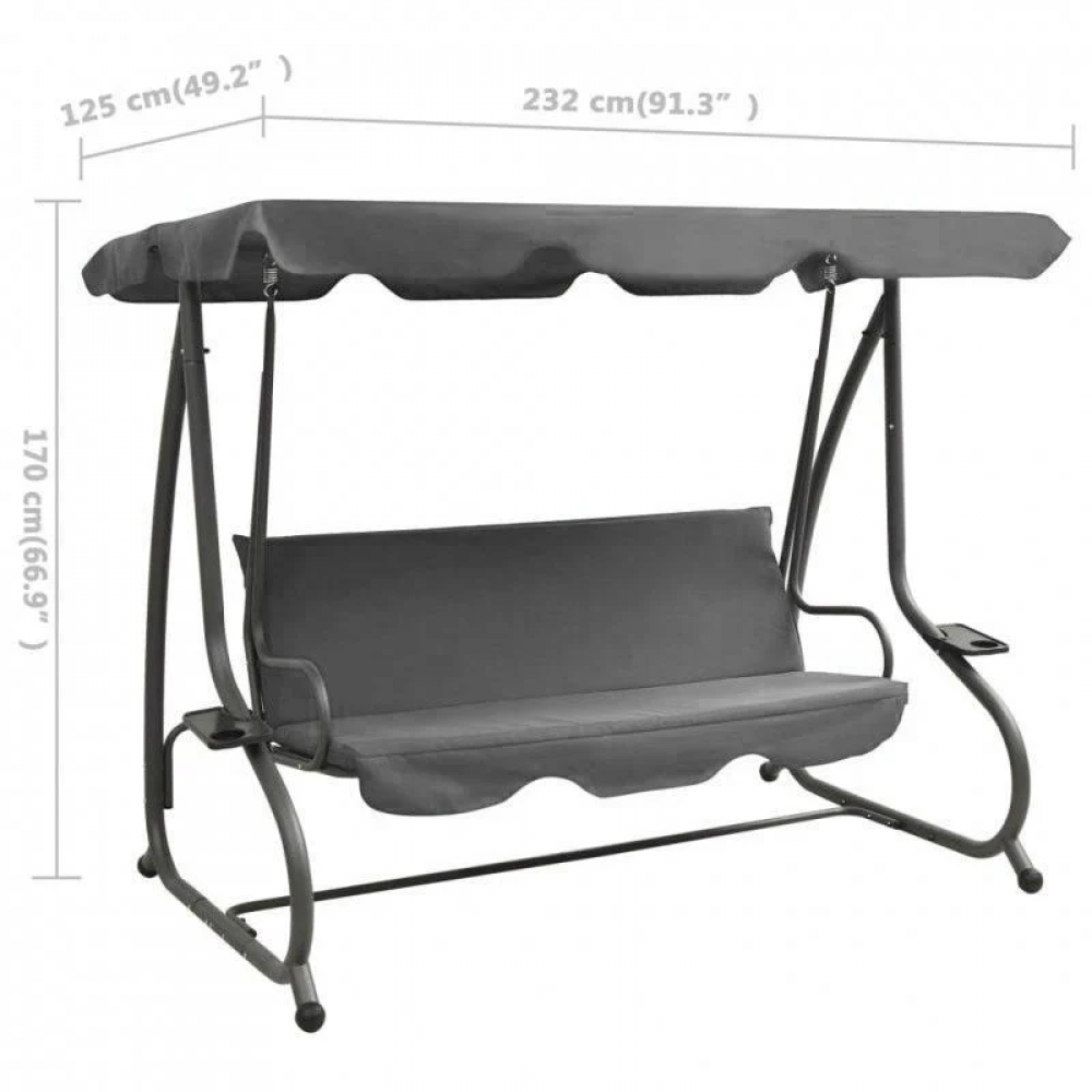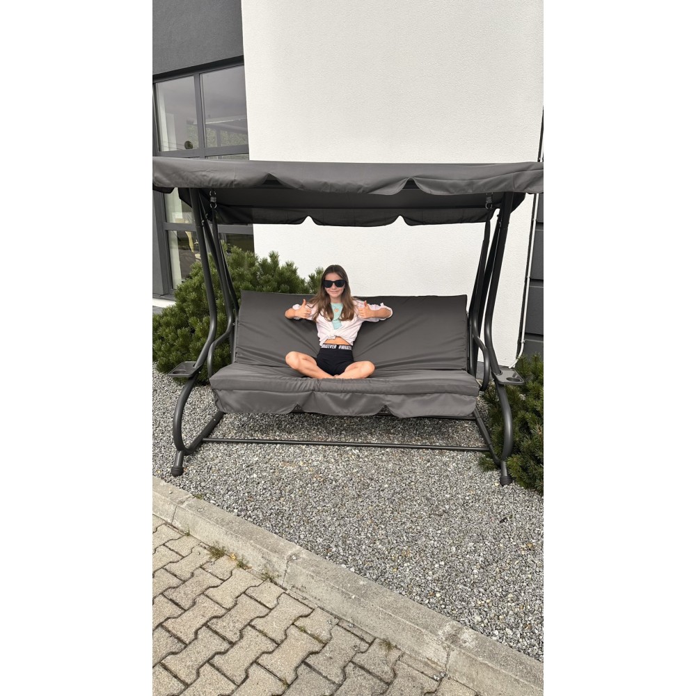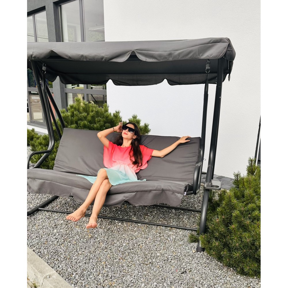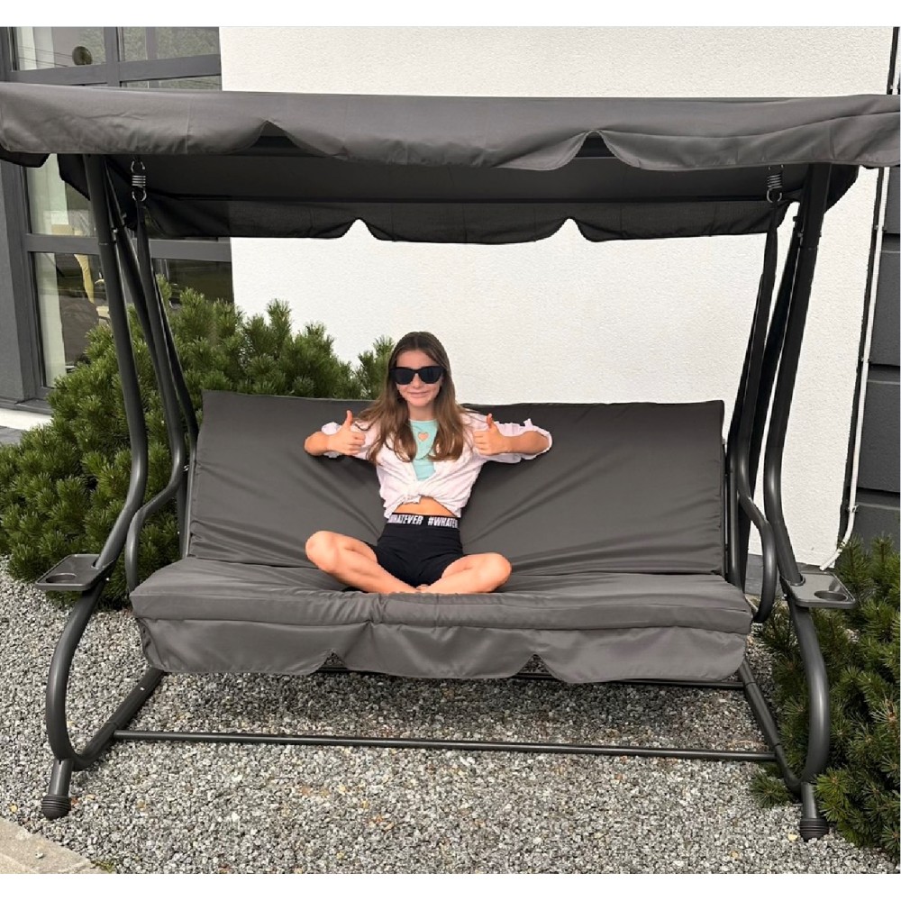Всю конструкцию поддерживает стальная рама с порошковым покрытием, что обеспечивает прочность и надежность качели, а также повышает ее устойчивость к различным погодным условиям. Дополнительный бонус - наличие удобных подставок для напитков с обеих сторон качелей. Эти качели - идеальное сочетание функциональности и эстетики для вашего комфортного отдыха.