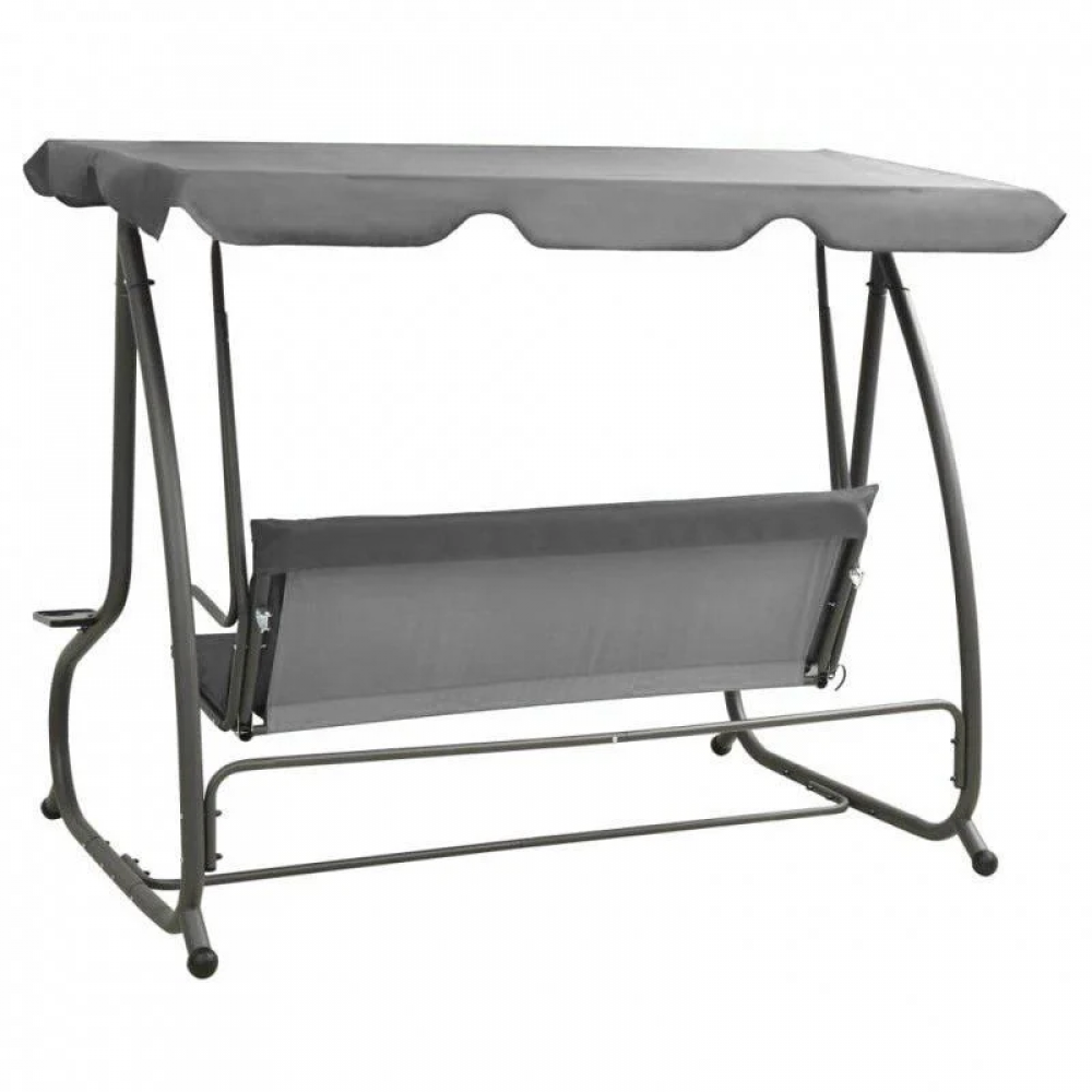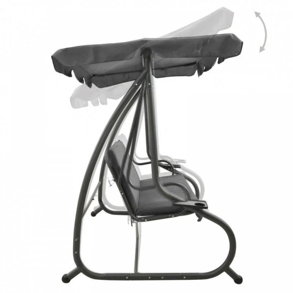 Крыша качели оборудована системой плавной регулировки угла наклона и оснащена специальными каналами в ткани, адаптированными под конструкцию навеса, что делает ее идеальным укрытием от прямых солнечных лучей.