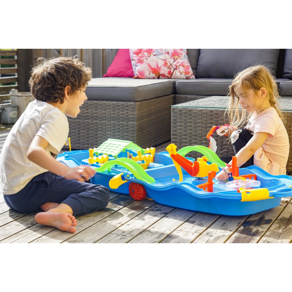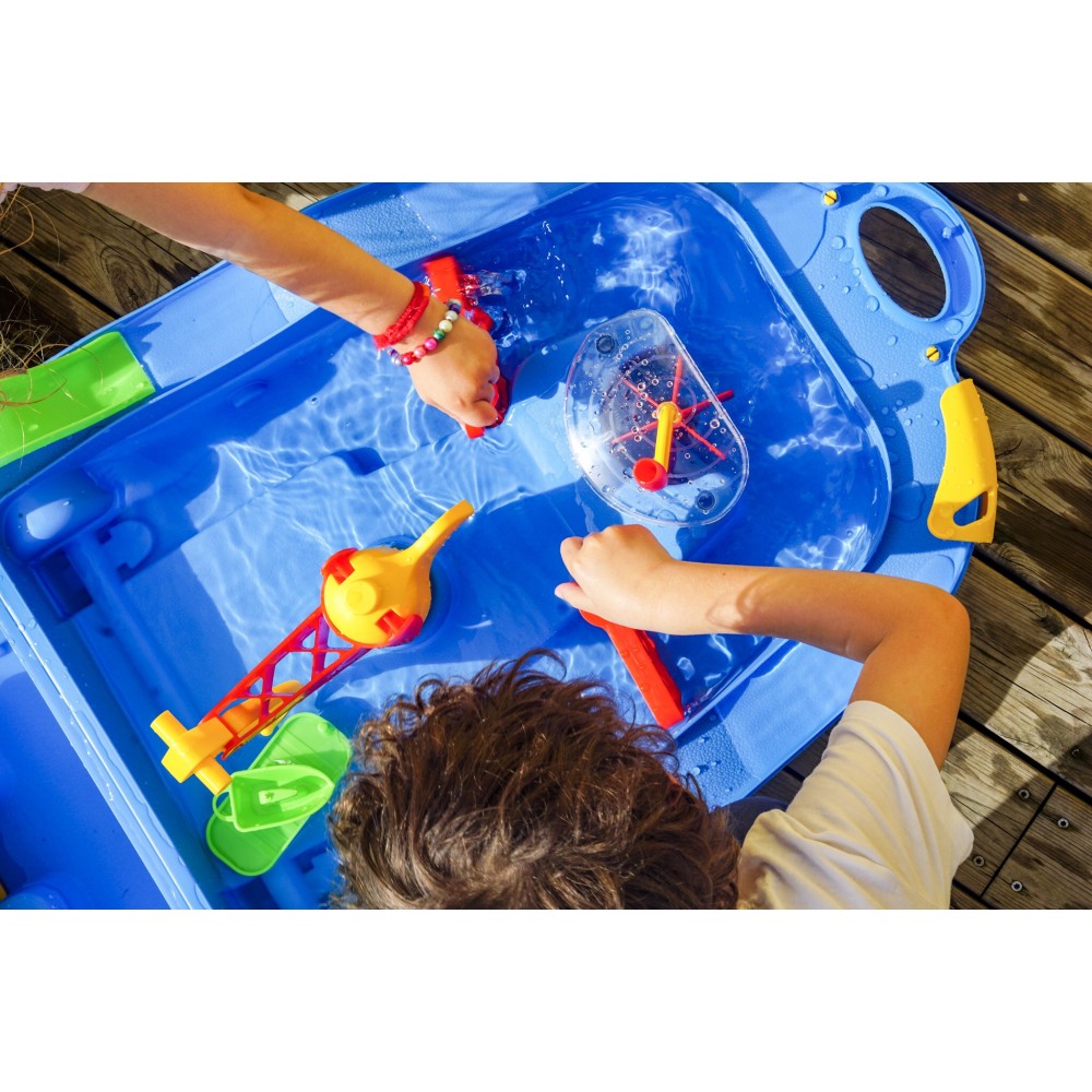 Польза для развития — манипуляции с шлюзами, краном и помпой развивают мелкую моторику, логику и воображение. А совместная игра учит ребёнка взаимодействовать и играть в команде.